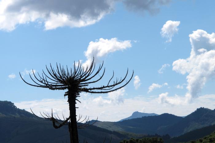 Apesar da Araucária ser considerada o símbolo do Rio Grande do Sul, a árvore é típica das regiões frias e, praticamente, moldura das paisagens de Monte Verde. Esta espécie leva dezenas de anos para crescer e só começa a dar frutos (pinhão) depois de adulta. Quando cai uma pinha, a outra já está começando a se formar para o próximo ano. A colheita tem início em abril e vai até agosto;